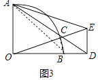 上一動(dòng)點(diǎn),射線AC交射線OB于點(diǎn)D,過(guò)點(diǎn)D作OD的垂線交射線OC于點(diǎn)E,聯(lián)結(jié)AE.![]()