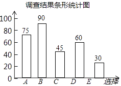 選B的人數為:300﹣75﹣45﹣60﹣30=90,