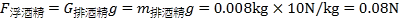 F浮酒精=G排酒精g=m排酒精g=0.008kg×10N/kg=0.08N,
