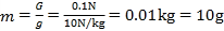 G=F浮水=ρ水gV=1.0×103kg/m3×10N/kg×1×10﹣5m3=0.1N,