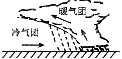 過境時 | 暖氣團被冷氣團抬升,常出現陰天、下雨、刮風、降溫等天氣現象 | 暖氣團沿冷氣團徐徐爬升,冷卻凝結產生連續性云雨 | 暖氣團平衡抬升或爬升,形成持續性降水 | |
