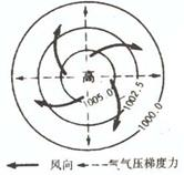 氣壓分布 | 氣壓中心低,四周高 | 氣壓中心高,四周低 | ||